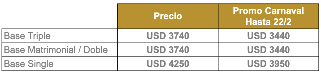 (*) Promo Carnaval de Viajes – Inscribiéndote y señando el viaje hasta el 22/2 inclusive.