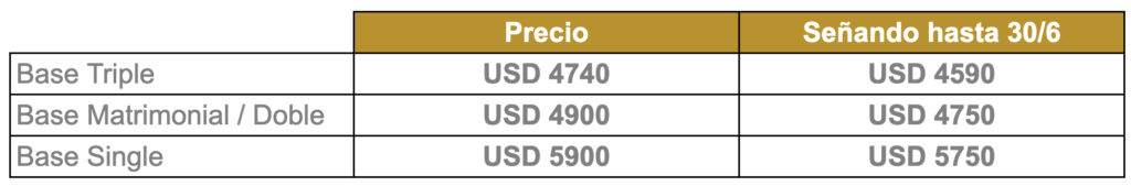 Nuestro viaje es un viaje para todas las edades. Es responsabilidad de cada pasajero consultar a su médico si está en condiciones de realizar el viaje.