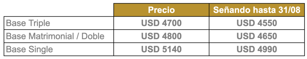 PRECIO POR PERSONA