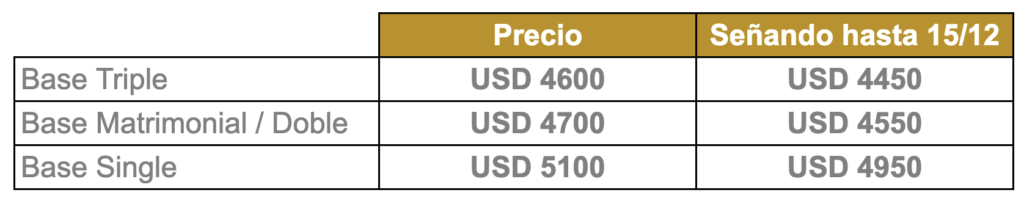 PRECIO POR PERSONA